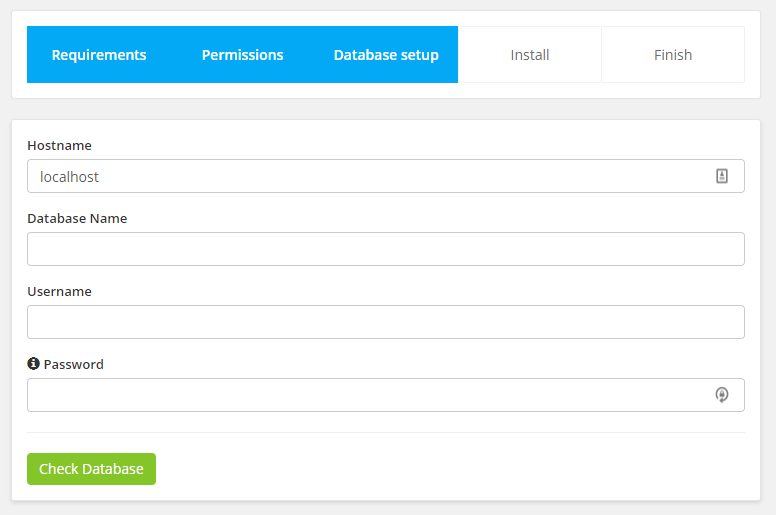Click Check Database and if the database connection is successfully you will be passed to the latest step otherwise please re-check your credentials and hostname. (usually hostname is localhost but you should check with your hosting provider or cPanel)